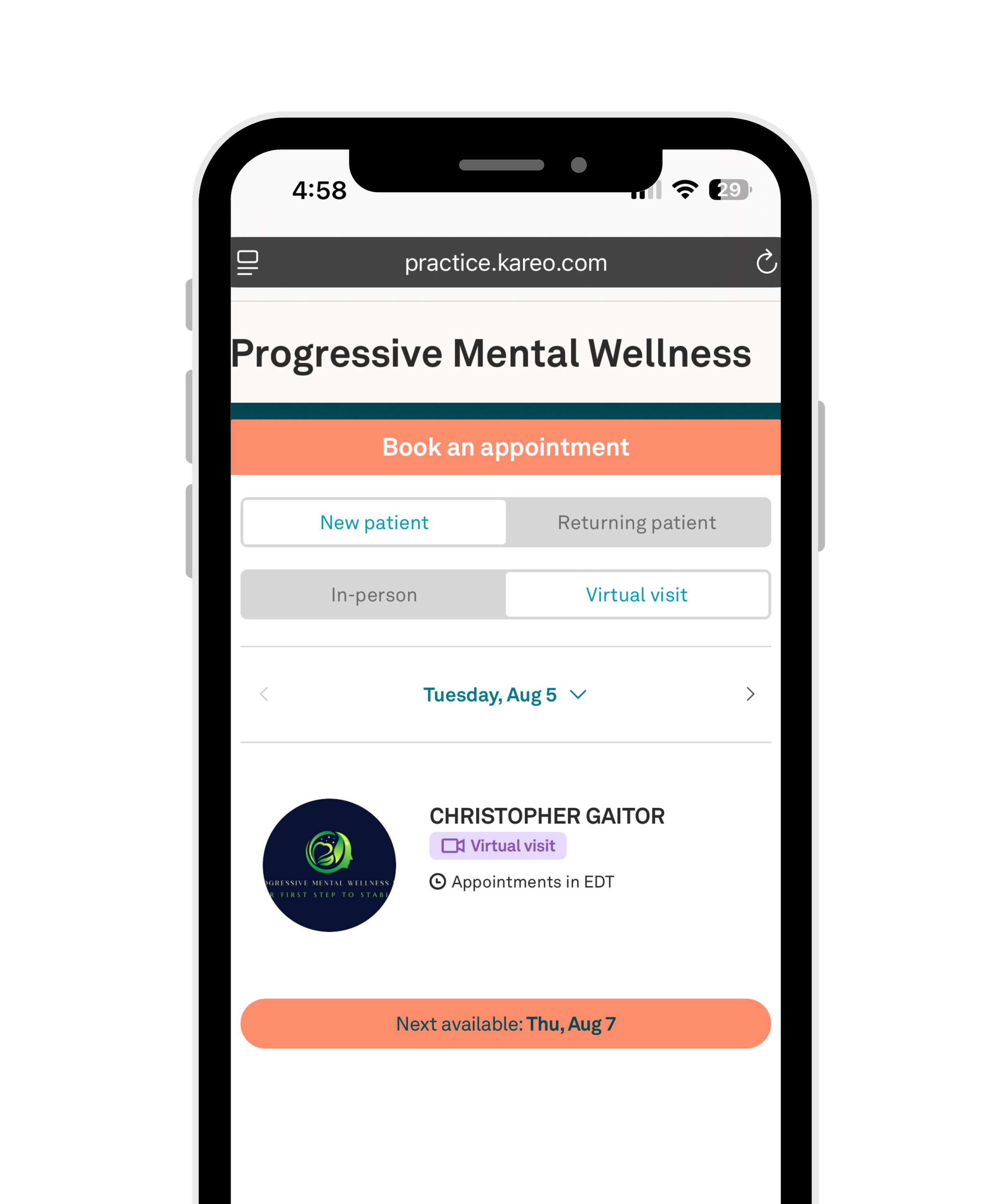I founded Progressive Mental Wellness to change that. My goal is to provide care that is flexible, compassionate, and truly centered around you. Whether you are managing anxiety, depression, ADHD, or another concern, I am here to help you find the right treatment plan so you can feel supported, understood, and empowered on your journey toward wellness.